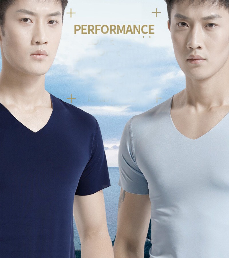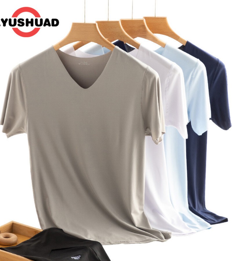 KYUSHUAD冰丝无缝男式短袖T恤V领夏季薄弹力上衣网眼快干