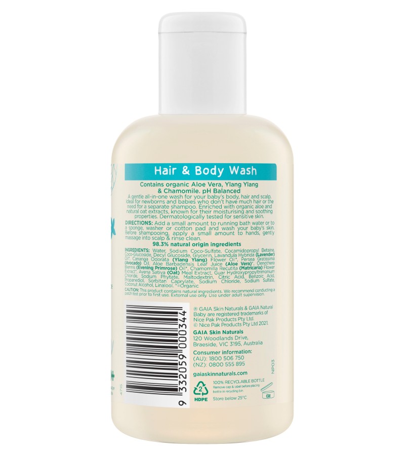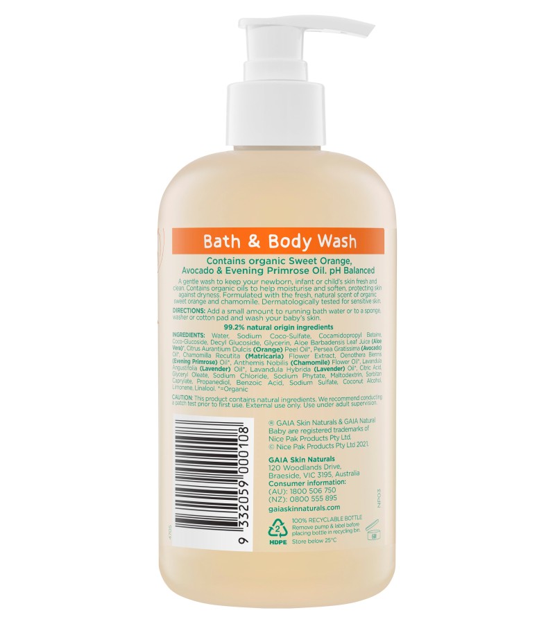 ✔Made from 99.2% natural origin ingredients, the GAIA Natural Baby Bath and Body Wash is a nourishing cleanser which nurtures and cares for delicate skin whilst cleaning them from head to toe.