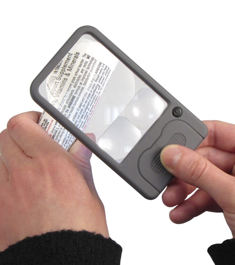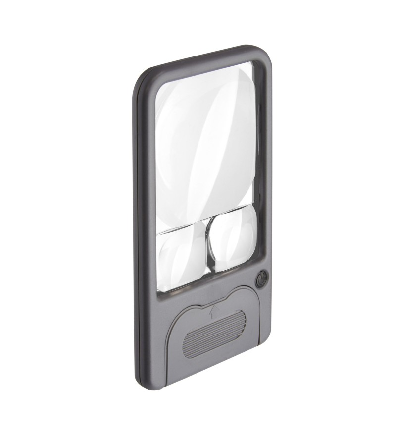The PM-33, Pocket Magnifier™ with 3 Acrylic lenses 2.5x, 4.5x and 6x Power is a multi-power LED lighted magnifier. This handheld Pocket Magnifier™ has three magnifying powers: 6x, 4.5x and 2.5x. It features a crystal-clear acrylic lens. It is an ideal low vision aide. The Pocket Magnifier™ is also perfect for reading fine print. It is so compact that it can easily fit in a pocket or purse.