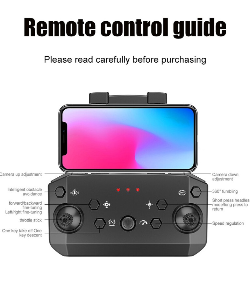 Features: Foldable arms, small size only 13cm, easy to carry. With altitude hold mode function, with Optical flow location and flight is stable. there is no need to adjust the position of the aircraft before flying In headless mode One Key Take-off / Landing / Return. Easily find your way home using the one-button back function. Built-in 4K camera capture stunning pictures and videos from the sky. Dual camera switch, get rid of fixed angle of view. Draw a flight path on the screen, the drone will fly autonomously along the specified path. VR 3D experience. Through mobile app with VR glasses, you can feel the emptiness from the perspective. MV production, music addition. 3.7V 1800mAh modular battery, easy to install and take, battery life up to 15 minutes. 2.4GHz anti-interference technology. 4 channels for ascent, descent, forward, backward, left flight, right flight and 360°roll. Six-axis gyroscope, smoother flight and more convenient control. LED lights make flying more spectacular, especially in the dark.