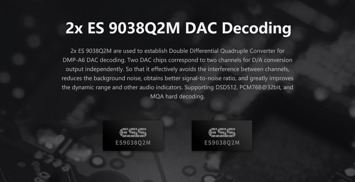 > 2xES9038Q2M DAC for independent stereo decoding.