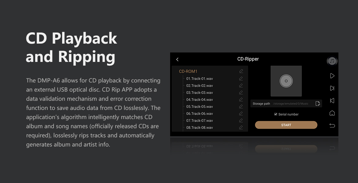 > Support external USB optical drive for CD disc playback and CD ripping.