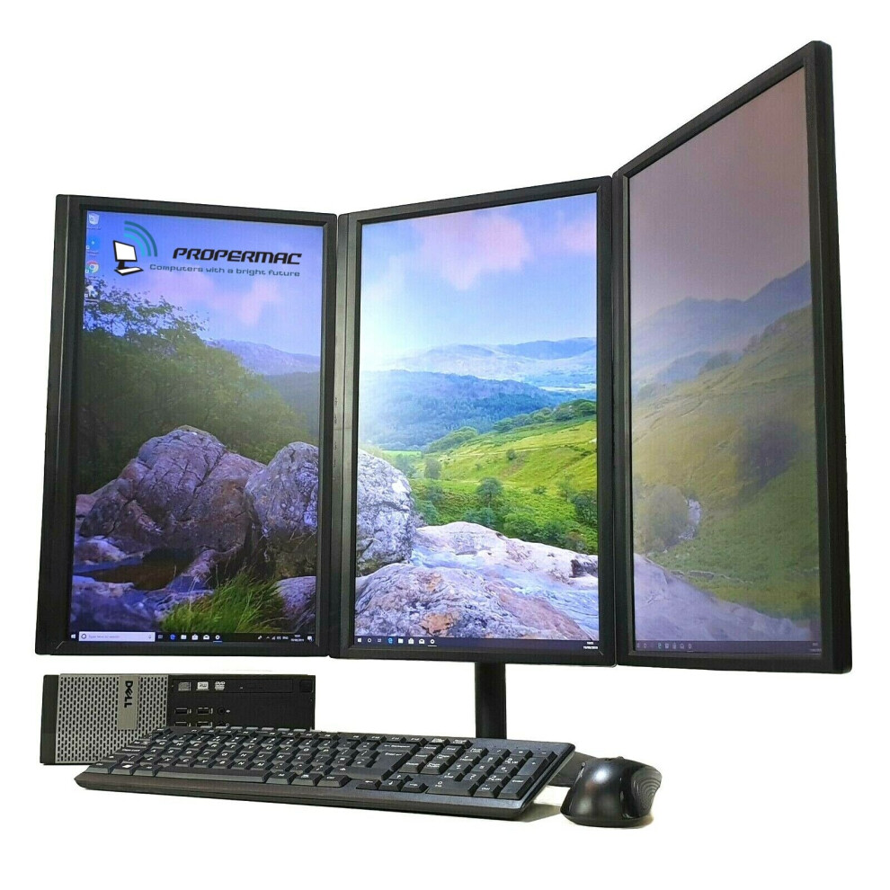Refurbished Triple Screen PC Computer Setup Desktop 480 SSD i5 Win 10 PRO Wi-fi