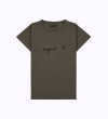 春夏季新款agnes b草书PALEESIJA字母纯棉短袖T恤深蓝色女装